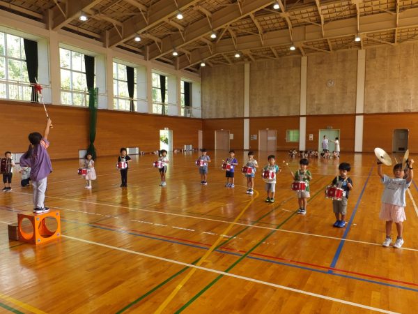 運動会でのふじ組の鼓隊やさくら組のポンポン演技は毎年の恒例となっています。毎年の子どもの人数や技能により仕上がりはまちまちですが、どの子も運動会の本番に向けて一生懸命練習していたのを見てきたので、毎年演技終了後は感動しています。